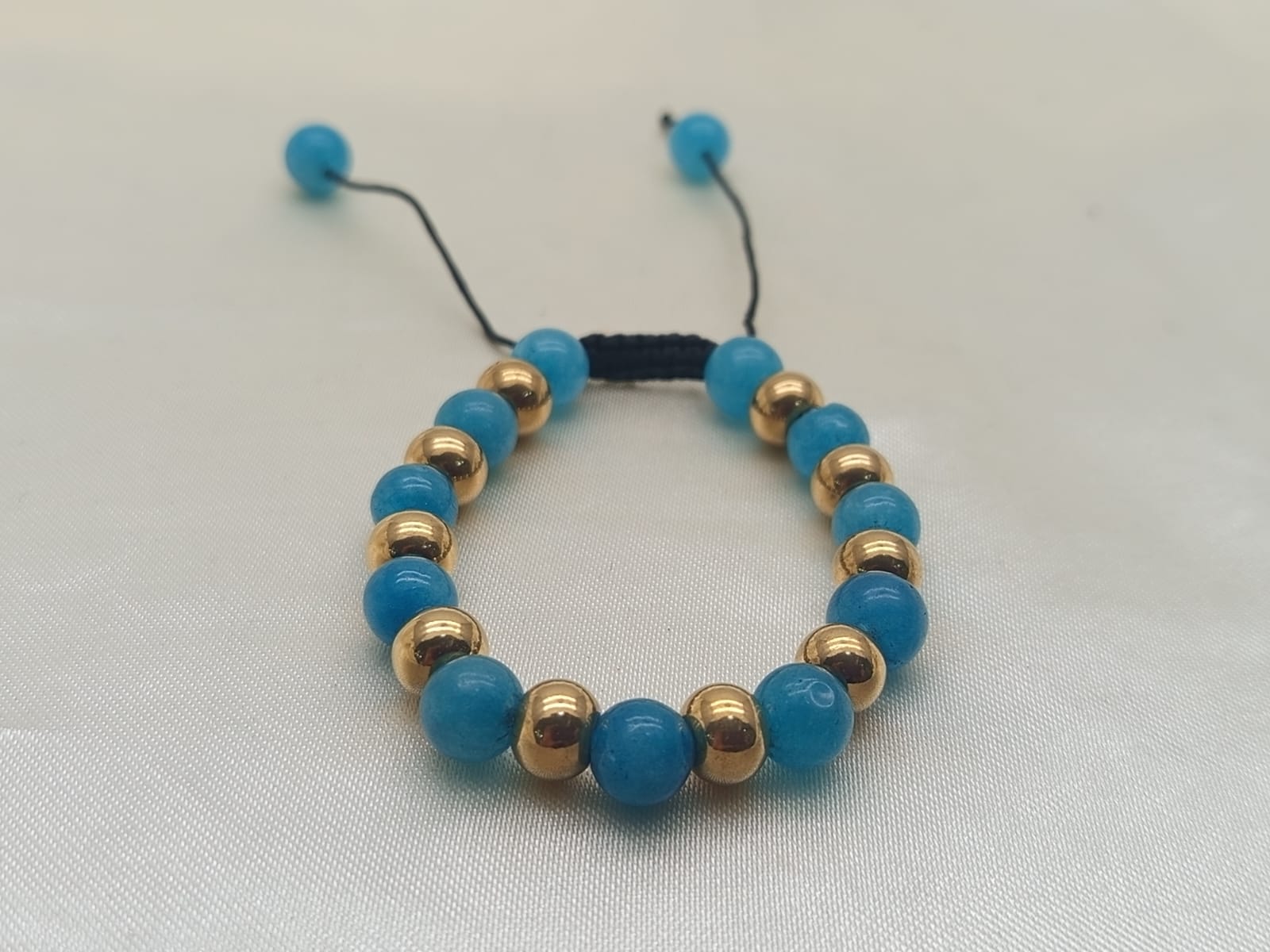 PULSERA PIEDRA NATURAL CELESTE CON DORADO