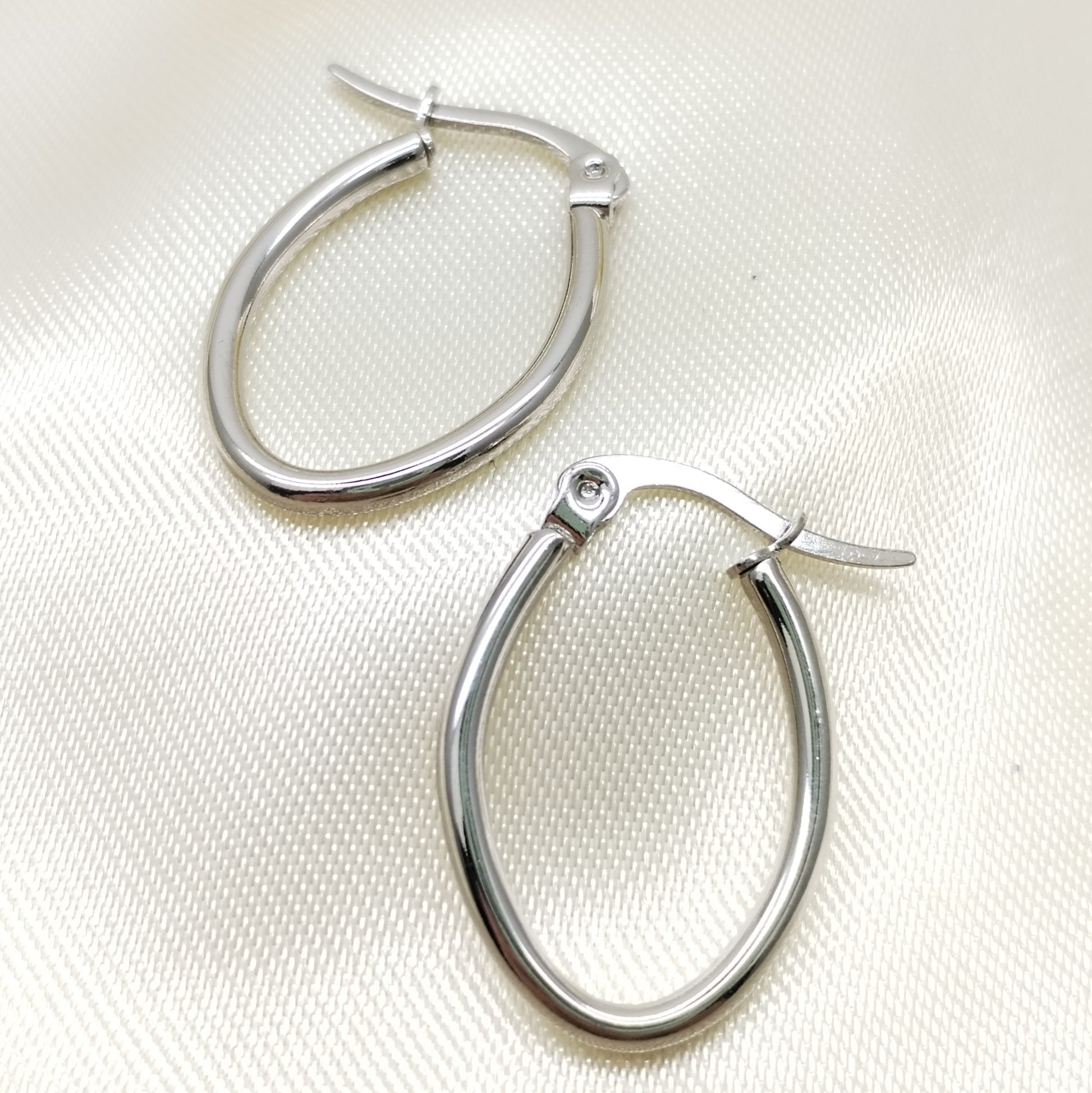 Arete en acero argolla plateada ovalada