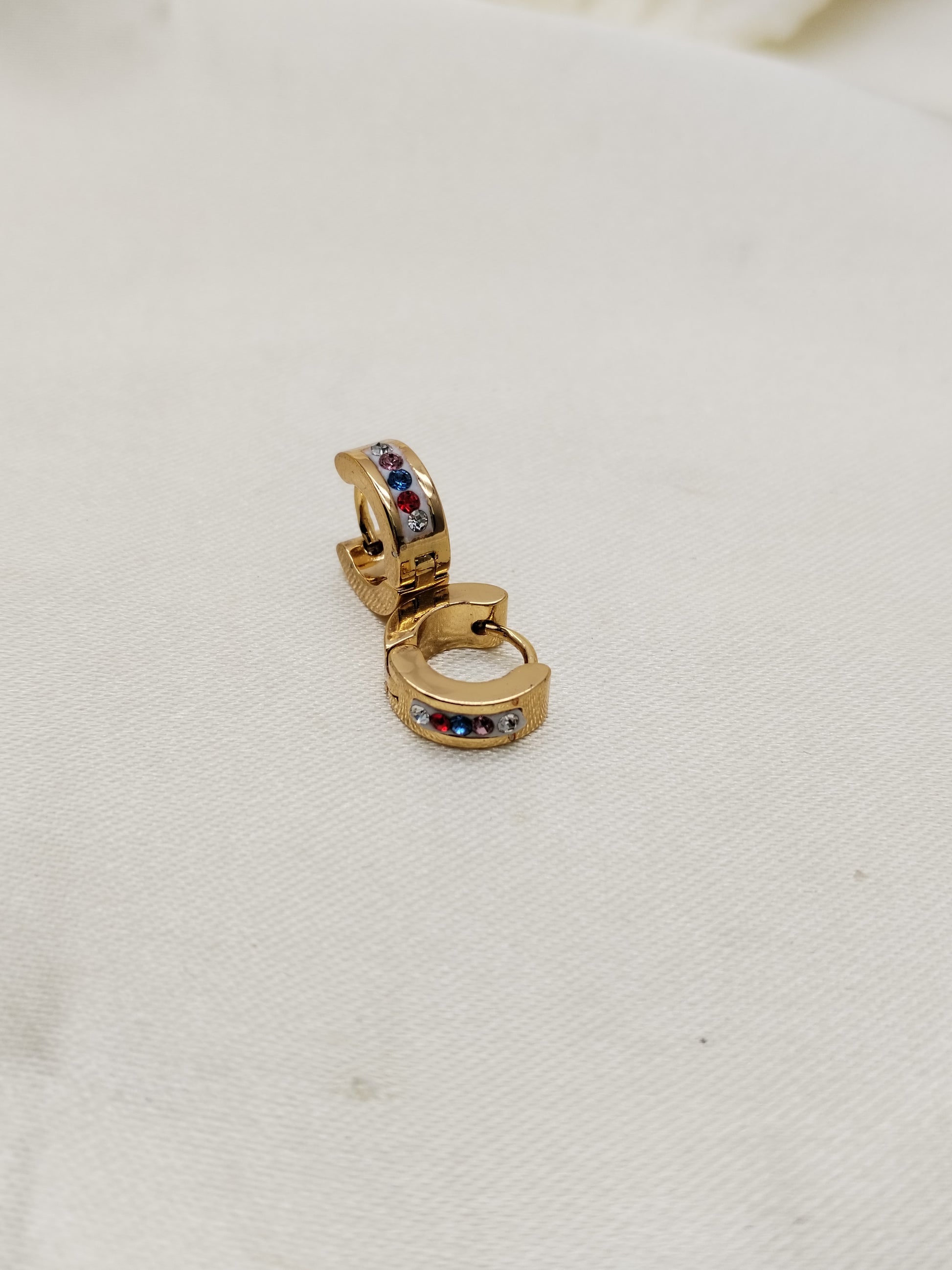Arete en acero dorado grueso con piedras
