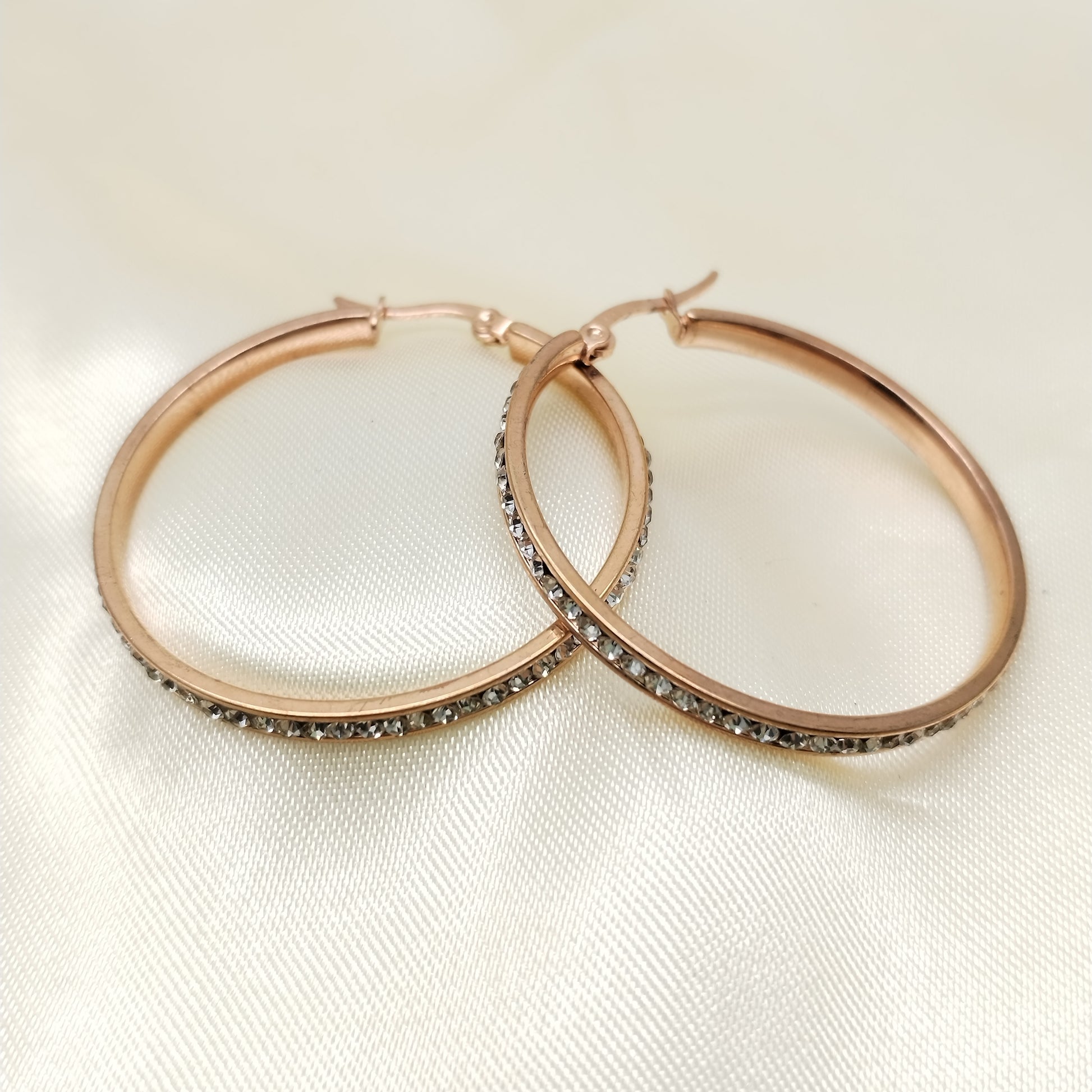 Arete en acero argolla oro rosa con piedras
