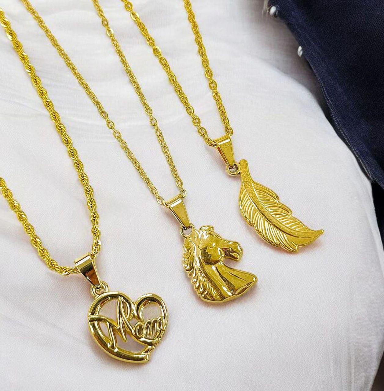 DIJE FIHURAS DORADOS EN ACERO